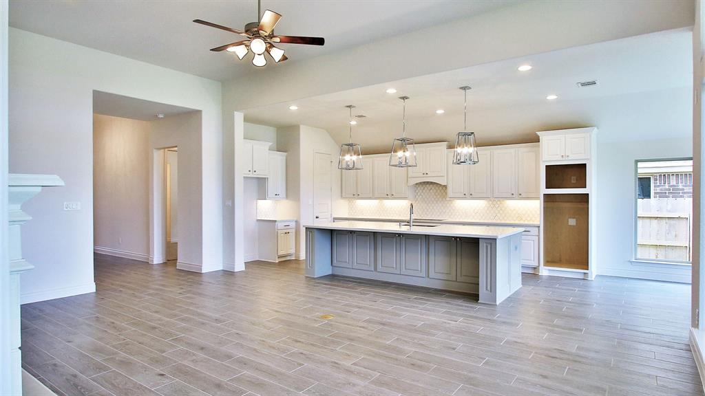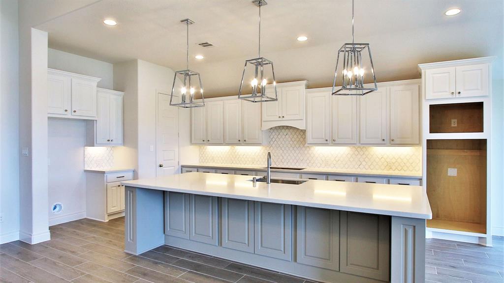 This adorable and fresh floorplan is a new construction Perry Home in Elyson in Katy! It boasts a mahogany front door with a spacious, extended entry with 12-foot ceilings. Family room with ceramic tile floor features a beautiful wall of windows and cast stone fireplace. Kitchen features an island with built-in seating space and walk-in pantry. Secluded master suite with master bath with double door entry features dual vanities, garden tub, separate glass-enclosed shower, and two walk-in closets. A game room, mudroom, and extended covered backyard patio. As well as a three-car garage with a five-foot side extension. This home is so unique and fun!